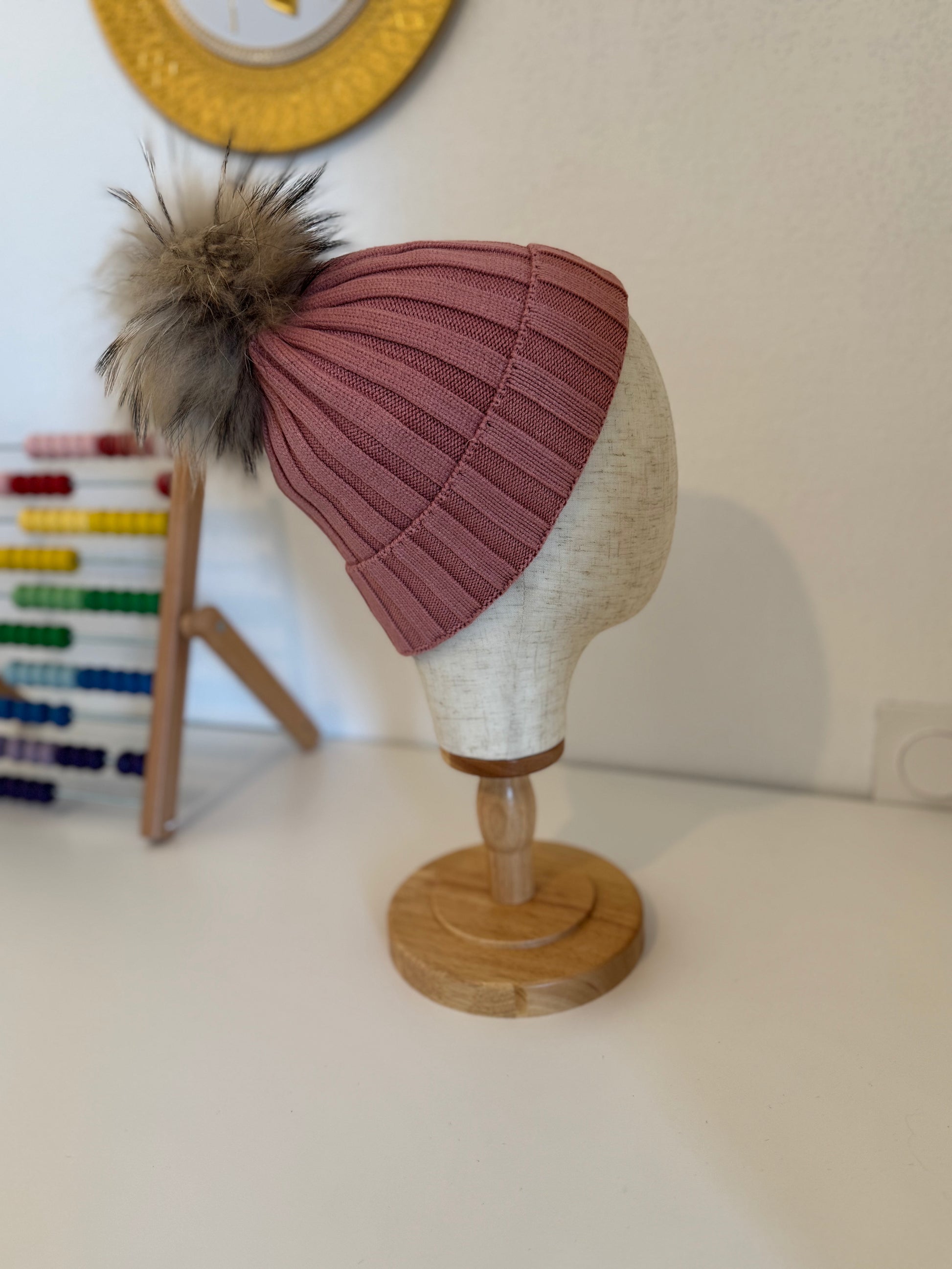 Bonnet enfant en Laine et cachemire avec pompon naturel